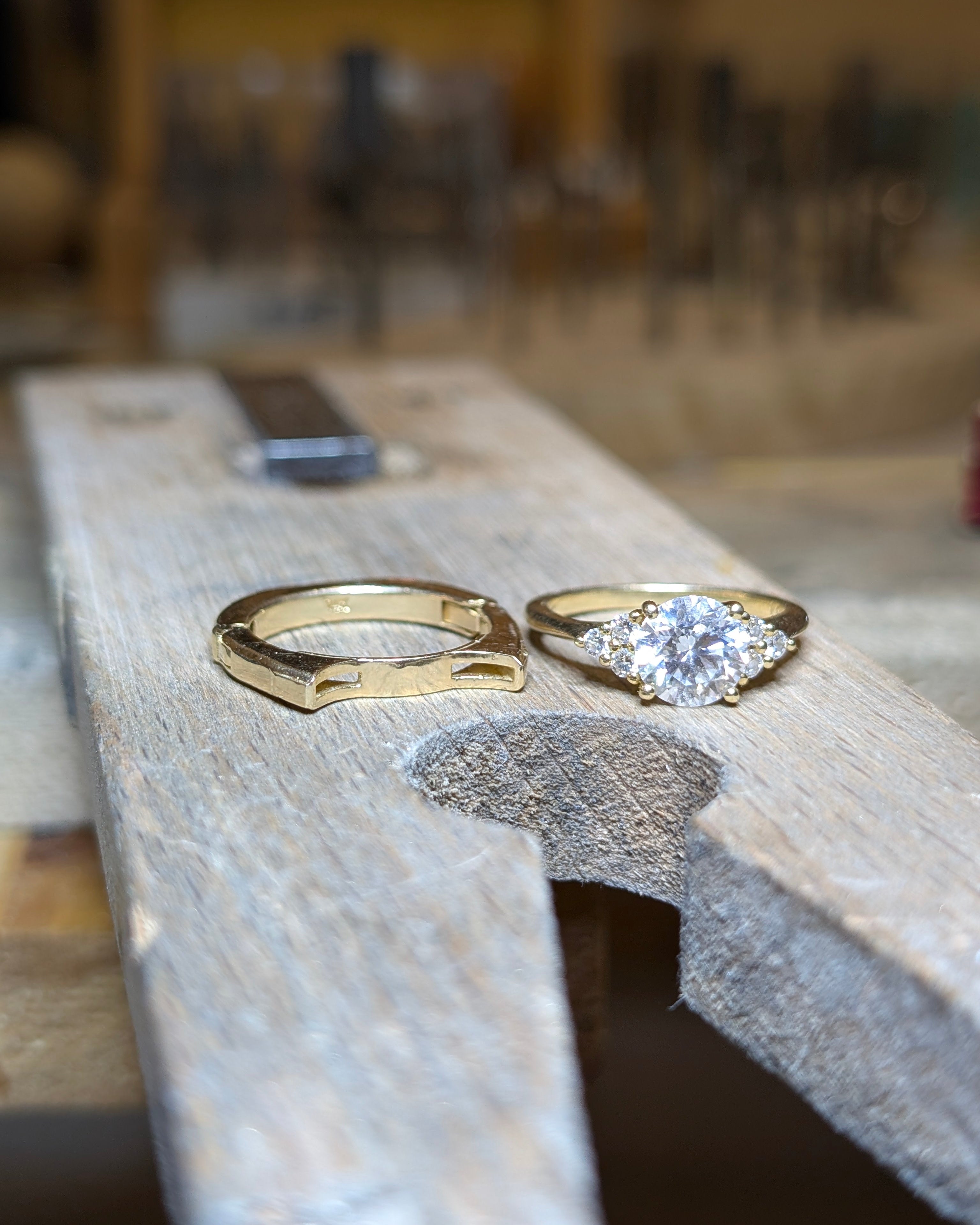 At Gold Fit Jewelry we supply various common Gold Fit Retrofit options in our catalogue. We also provide a custom quoting service for specific ring designs. Completing a Retrofit requires a jeweler or goldsmith to cut the old ring and size it to a Gold Fit Retrofit shank. Gold Fit Jewelry provides in house retrofitting Service.